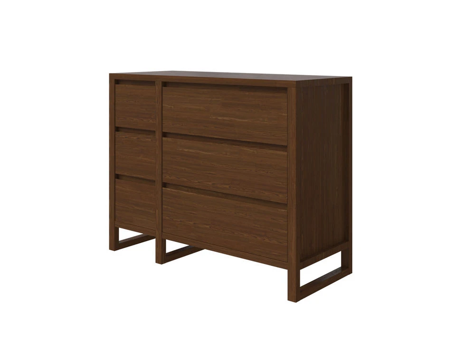 Широкий комод Canada с шестью ящиками выделяется необычным дизайном и разной шириной секций с ящиками.